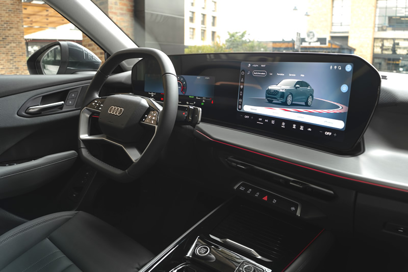La tercera generación del Q3 adopta el concepto Digital Stage, compuesto por una pantalla panorámica curva que integra un cuadro digital de 11,9 pulgadas y un sistema de infoentretenimiento de 12,8 pulgadas.