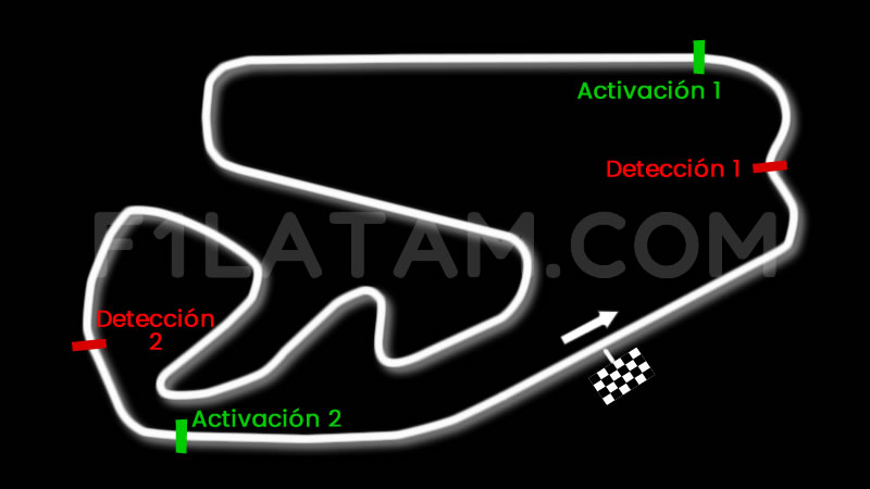 El reglamento deportivo de la Fórmula 1 establece que el Drag Reduction System (DRS) podrá ser utilizado en los lugares preestablecidos por la FIA, tanto en prácticas libres, como en clasificación y carrera.