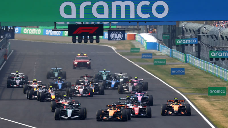 Vuelta 22: Russell en boxes. Salen en el P5 por delante de Verstappen. Colisión de Bearman en Spoon. Safety Car.